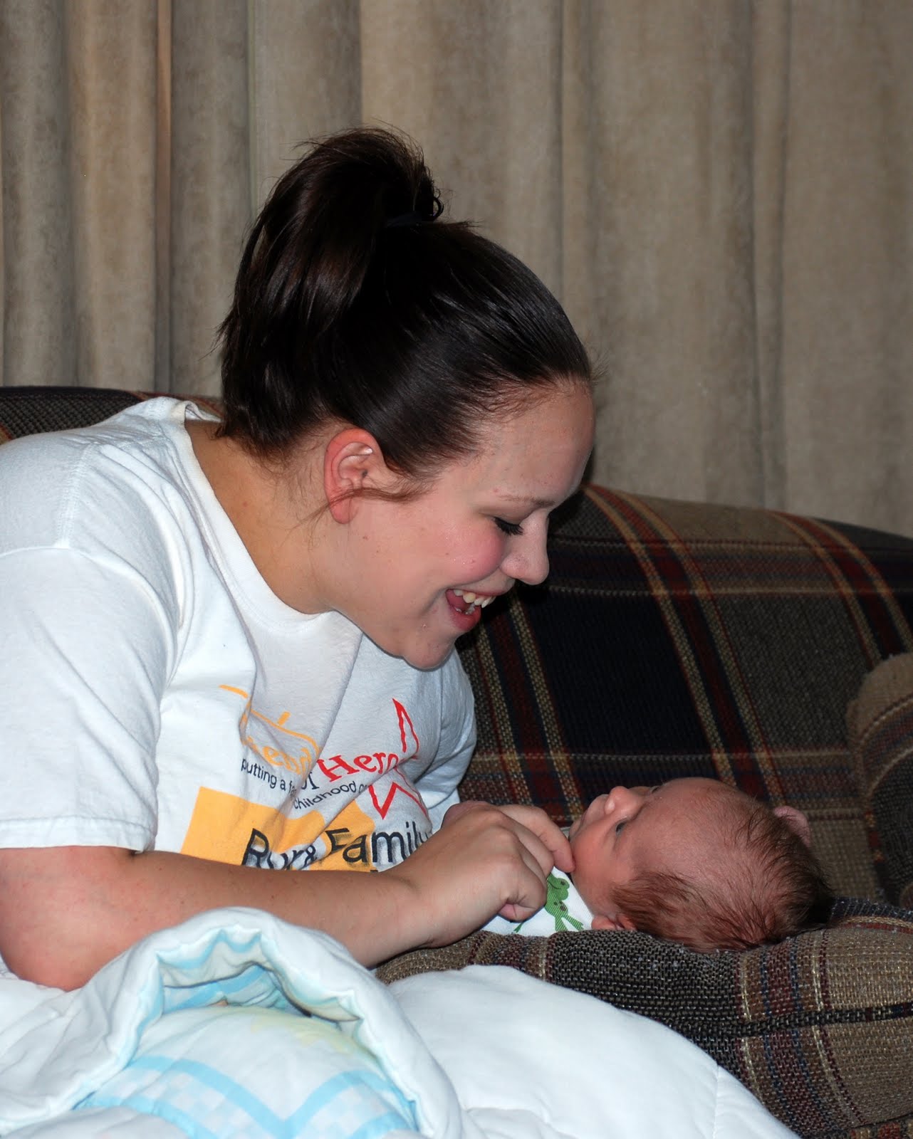 We really needed to visit our granddaughter, Amber, in Garden City, Michigan. Her second child was born on August 19th and Mr. Right hadn't even seen him yet. Not only that, but I was suffering from a serious lack of pictures for his photo file. So we went. We got started late because, yes, we were exhausted from the first part of the weekend. Also, I was determined to shred which of course necessitates a shower; and, the skimmer and filter pads had to be cleaned for the big pond. We finally got on the road about 12:30 our time which is 1:30 Amber's time.